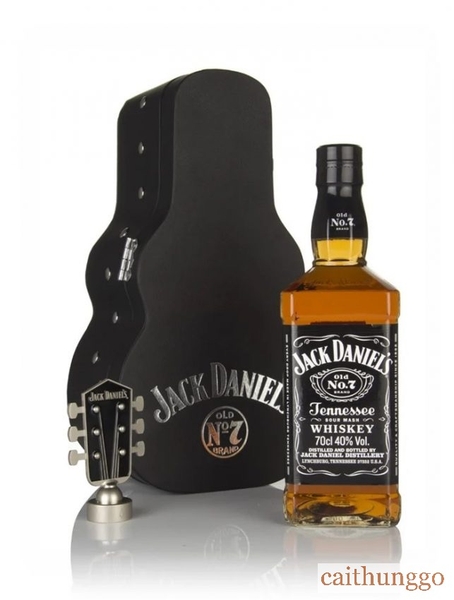 Dành cho fan của Tennessee whiskey và âm nhạc guitar, bộ quà tặng này bao gồm chai Jack Daniel’s 700ml và hộp đựng hình cây đàn guitar, kèm nắp chai kim loại hình đầu đàn. Lưu ý: không bao gồm đàn guitar thật.