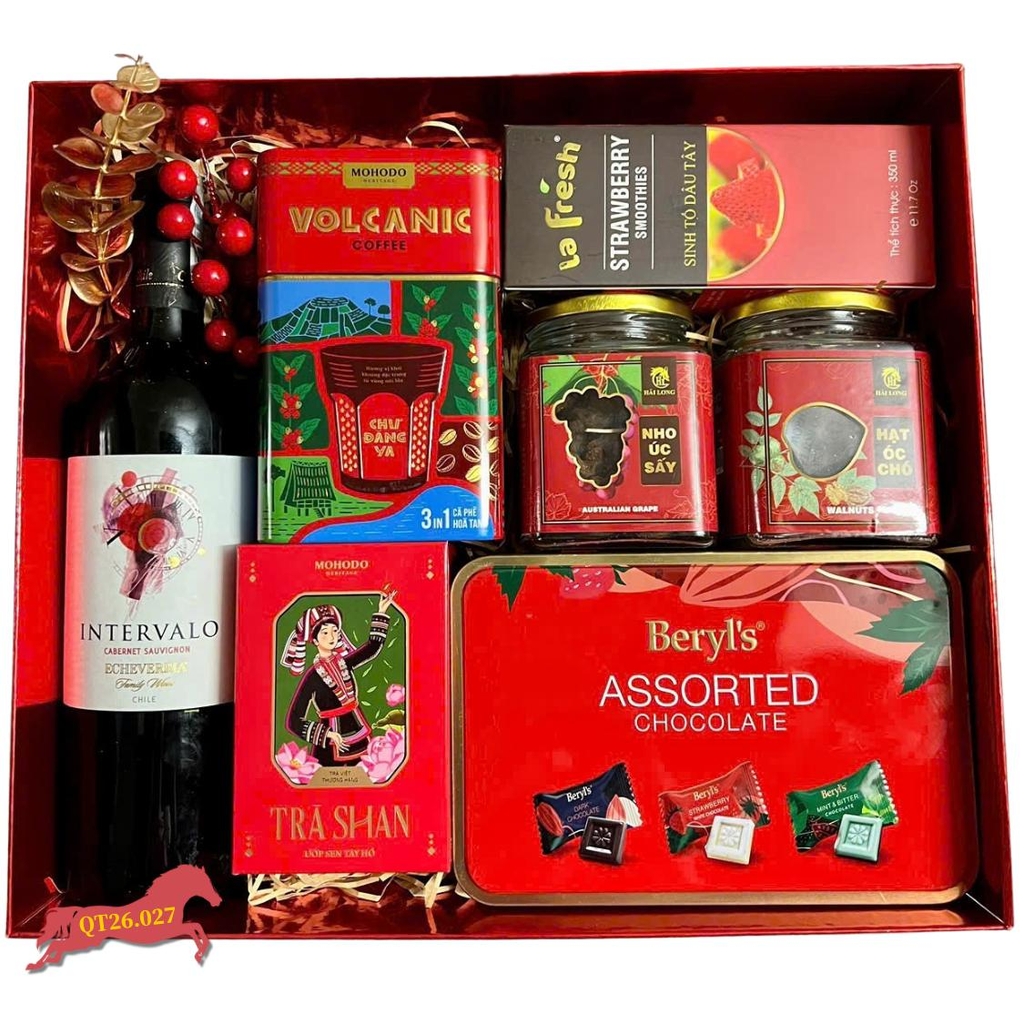Hộp Quà Tết QT26.027 mang đến một làn gió mới cho thị trường quà tặng năm 2026. Không chỉ sở hữu chai rượu vang đỏ Chile chất lượng, set quà này còn tích hợp các sản phẩm nông sản Việt Nam cao cấp và nguyên liệu pha chế tiện lợi. Đây là mẫu hộp quà tết đa năng, vừa sang trọng để làm quà tết doanh nghiệp, vừa thiết thực để sử dụng trong những ngày sum vầy.