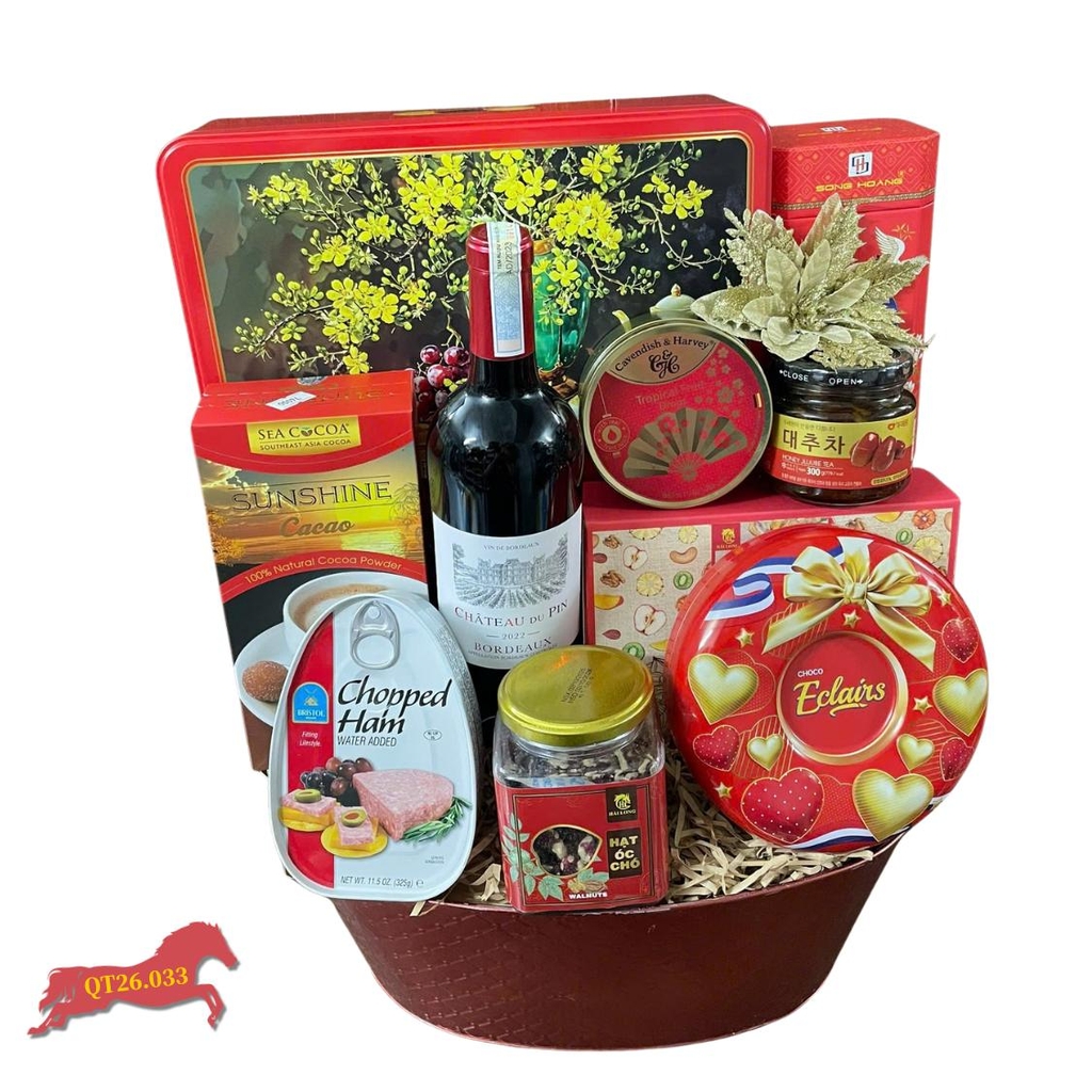 Với 12 món sản phẩm được sắp xếp nghệ thuật trong hộp quà cao cấp, QT26.033 toát lên vẻ đẹp của một giỏ quà tết sang trọng và đầy đặn. Nếu bạn đang quan tâm giá rượu vang pháp nhập khẩu và các set quà tết chất lượng, hãy liên hệ Tiệm Rượu Cái Thùng Gỗ. Chúng tôi cam kết mang đến những sản phẩm chính hãng với mức giá tốt nhất thị trường.