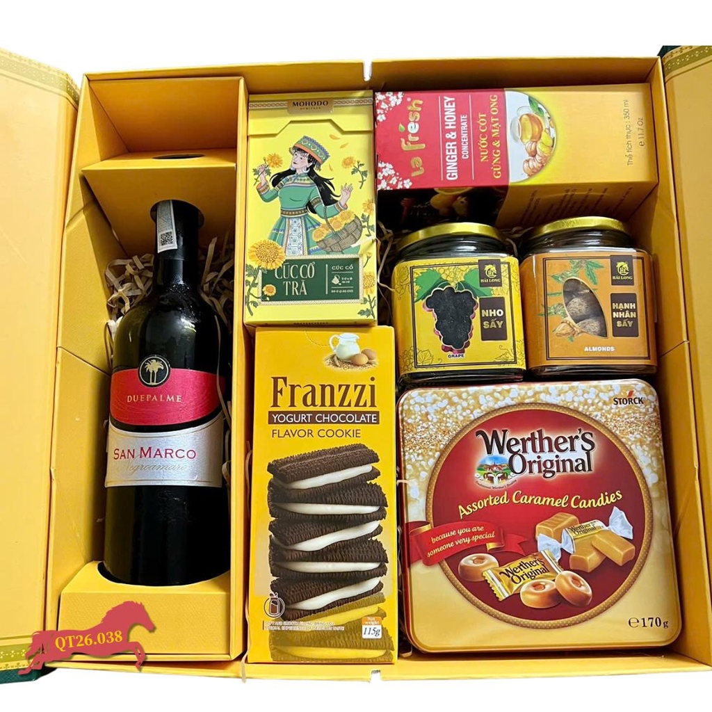 Trao gửi yêu thương và lời chúc an lành trong dịp năm mới với Hộp Quà Tết QT26.038. Khác biệt với những set quà thông thường, QT26.038 là sự kết hợp tinh tế giữa đẳng cấp của Vang Ý nhập khẩu và những sản phẩm chăm sóc sức khỏe từ thiên nhiên. Đây là hộp quà tết sang trọng, thể hiện sự quan tâm sâu sắc đến sức khỏe của người nhận, đặc biệt phù hợp làm quà tết doanh nghiệp.
