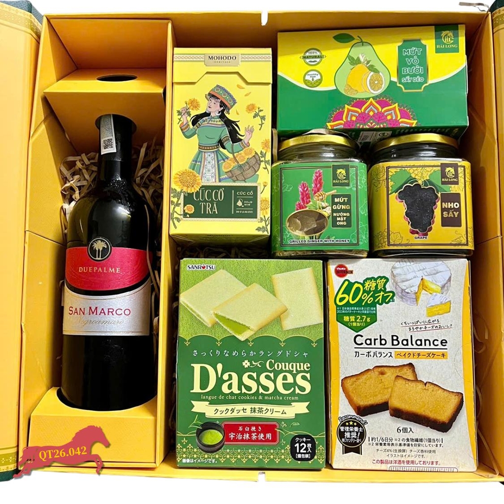 Đón chào năm mới 2026 với Hộp Quà Tết QT26.042, một tuyệt phẩm quà tặng hội tụ đủ các yếu tố: Sang trọng, Ngon miệng và Tốt cho sức khỏe. Sự kết hợp giữa dòng Vang Ý trứ danh cùng các loại bánh Nhật thượng hạng và mứt Việt truyền thống khiến đây trở thành lựa chọn quà tết doanh nghiệp hoàn hảo để gửi trao tâm ý.