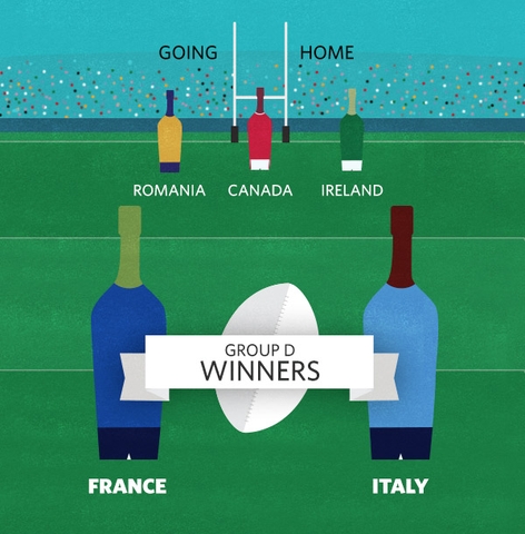 Bảng D là bảng đấu cạnh tranh nhất với cả năm quốc gia đều sản xuất rượu vang. Tuy nhiên, Pháp và Ý là những người chiến thắng rõ ràng. Pháp là nguồn gốc của các giống nho phổ biến nhất thế giới: Cabernet Sauvignon, Pinot Noir, Sauvignon Blanc, Chardonnay và Syrah. Trong khi đó, Ý là nhà sản xuất rượu vang lớn thứ hai thế giới và tự hào có một danh mục ấn tượng về các giống nho và phong cách (chi tiết hơn về điều này sau).