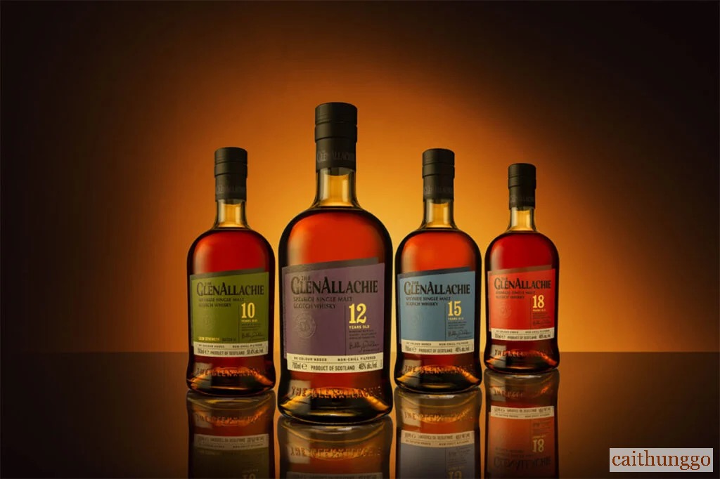 - GlenAllachie 8 Year Old: Được giới thiệu vào năm 2022, dòng này ủ trong các thùng Pedro Ximénez và oloroso sherry puncheons, virgin oak casks và red wine barriques. Đội ngũ đã tạo ra một loại rượu siêu trái cây, đậm đà với năng lượng tươi sáng.