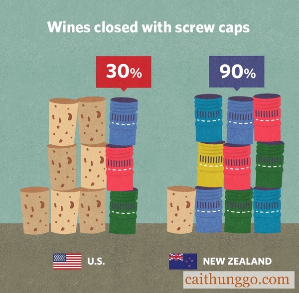 Hãy đối chiếu với New Zealand, nơi hơn 90% rượu vang được đóng dưới nắp vặn—cả rượu vang uống hàng ngày giá rẻ và một số chai vang hảo hạng nhất của đất nước.