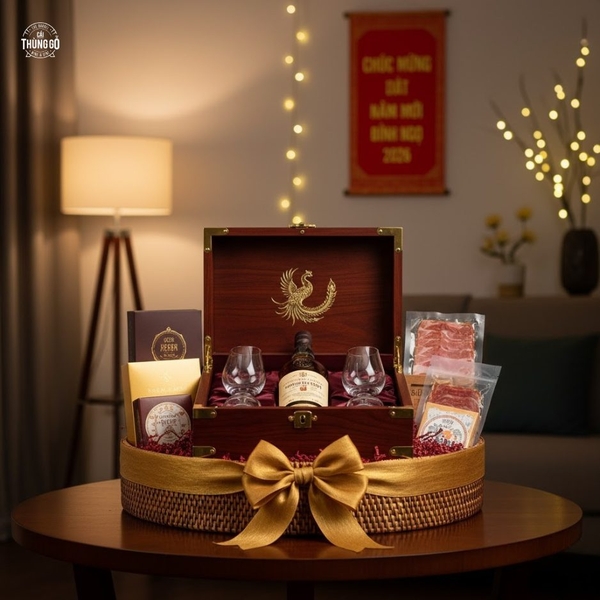 - Giỏ quà tết cao cấp: Thường là các hộp quà rượu tết (rượu vang, whisky) để khẳng định đẳng cấp.