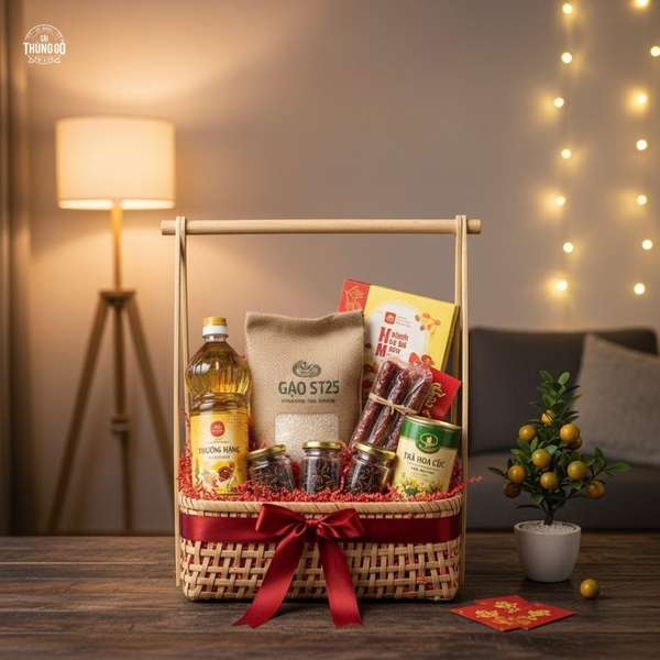 - Tặng nhân viên: Giỏ quà thiết thực (nhu yếu phẩm cao cấp) để hỗ trợ chi tiêu.